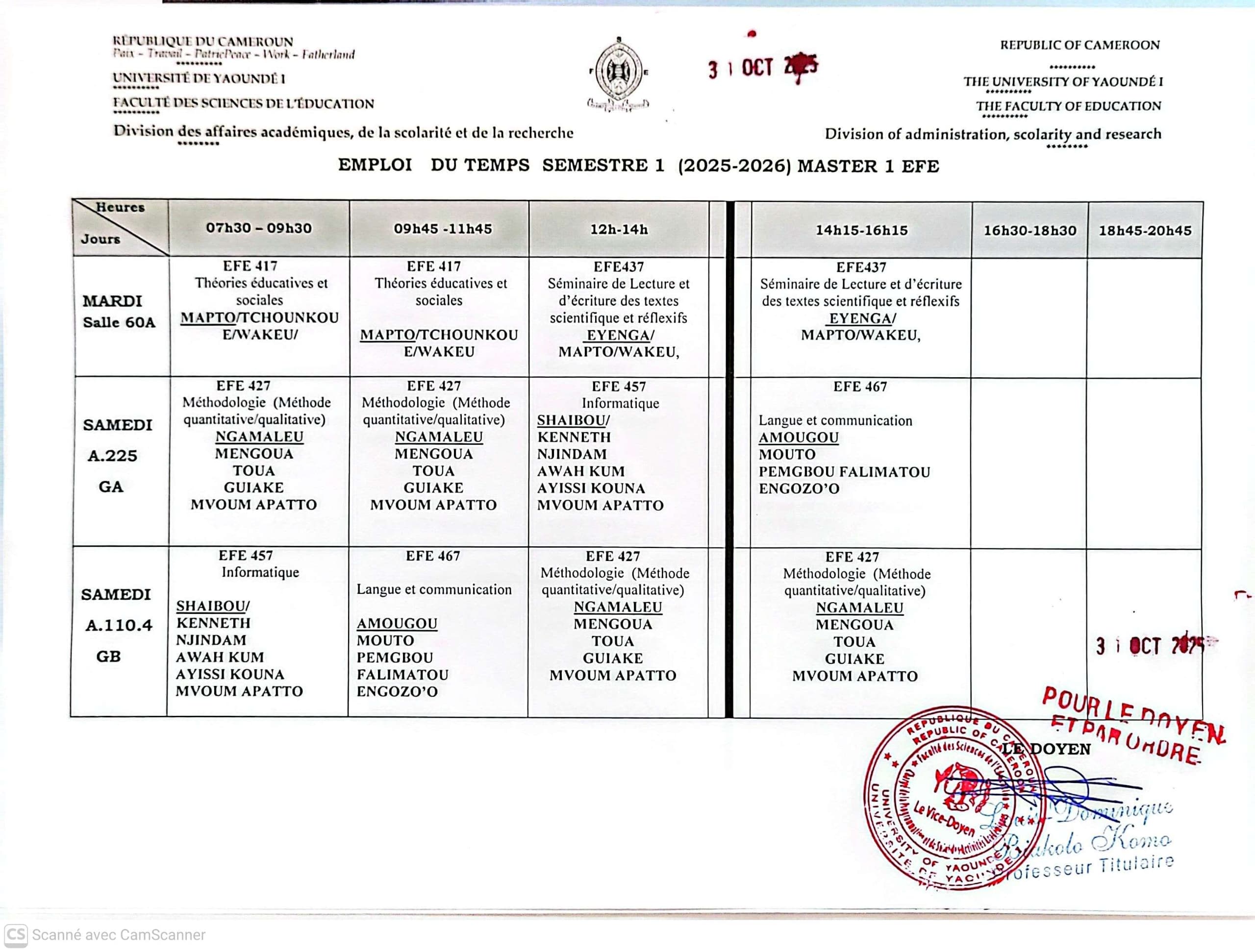 Curricula et Évaluation: Liste des enseignants
