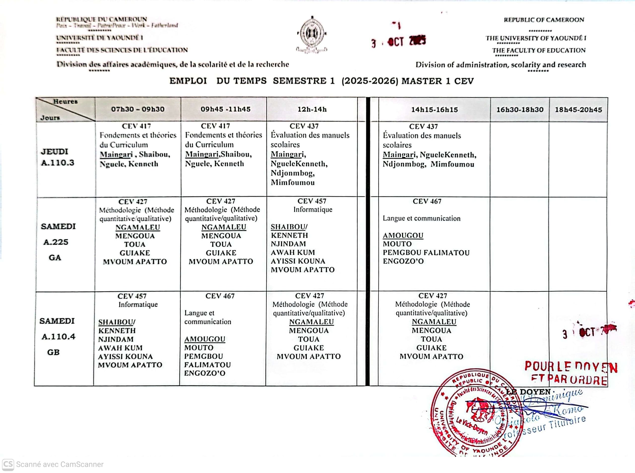 • Curricula et Évaluation: Liste des enseignants