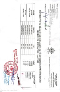 RECTIFICATIF DU PLANNING DES EXAMENS DE FIN DU PREMIER SEMESTRE 2025-2026 ( MASTER 1) SESSION DE RATTRAPAGE Share 22 FéV 2026 0